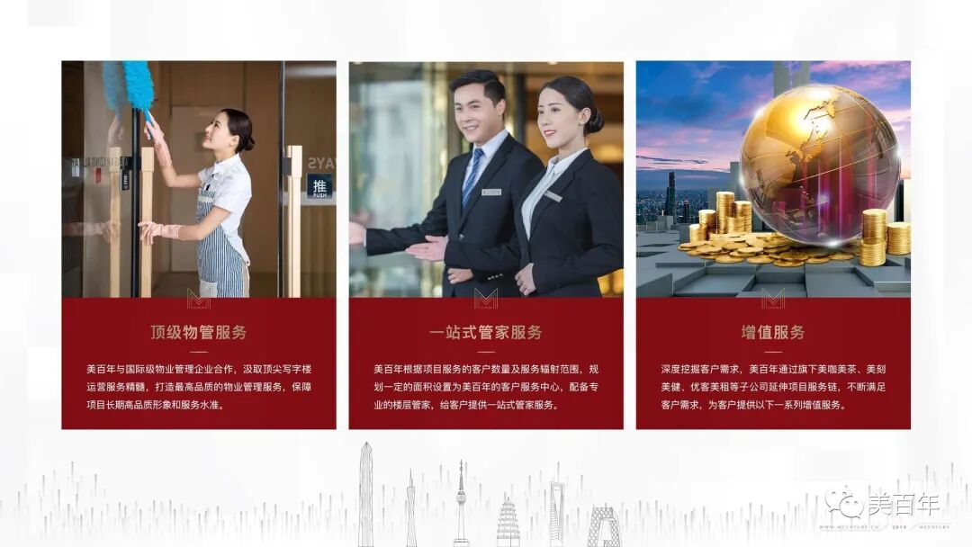 【美百年】拥有专门的精英团队,在楼层配备专业服务,解决各类问题及需求,将无形的服务通过有形的人为因素,时时刻刻为入驻企业提供一站式管家服务。