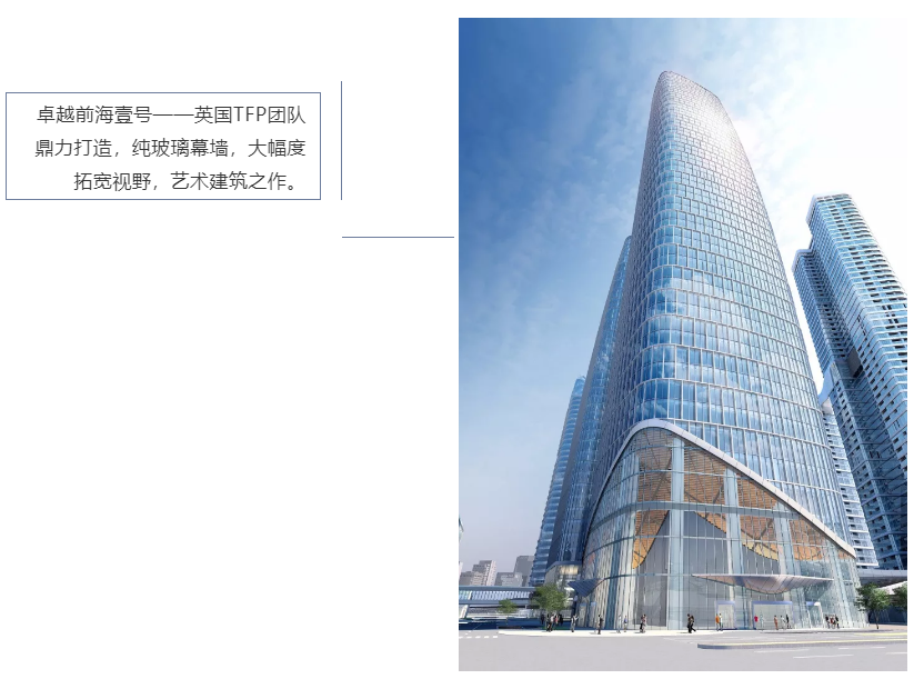 前海,深港联合打造的高新金融片区,国内最具发展潜力的区位之一,是 “一带一路”、前海蛇口自贸区、深港合作区、前海桂湾金融先导区、粤港澳湾区的正核引擎,在这仿若能看到商业资本之河波涛汹涌的前海地段,卓越前海壹号正在以前海开篇巨著的门户之姿,屹立其中。